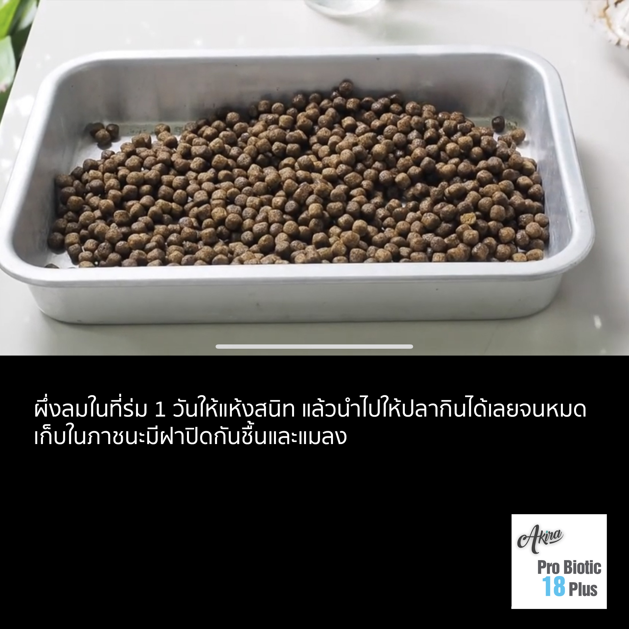 - ให้ปลากินตามปรกติได้เลย ส่วนที่เหลือให้ใส่กระปุกปิดฝาเก็บในตู้เย็น
